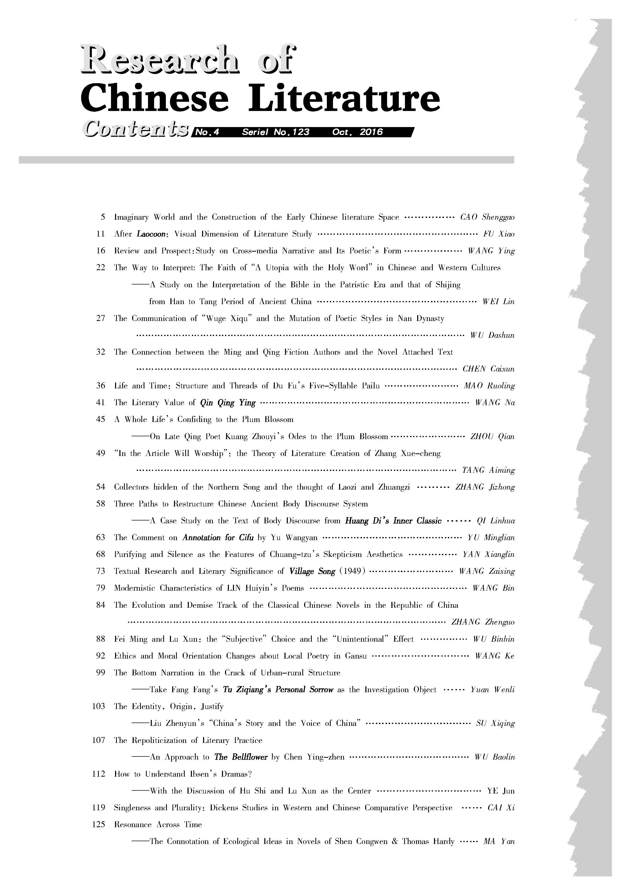 《中国文学研究》2016第四期(总123期)