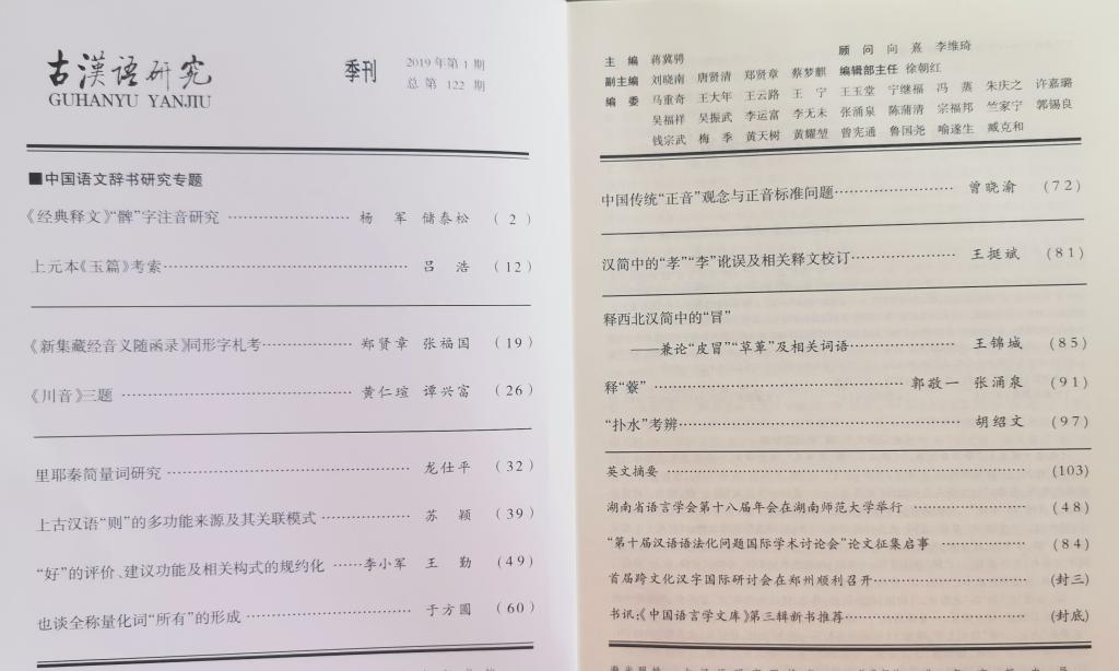 《古汉语研究》2019年第1期(总第122期)