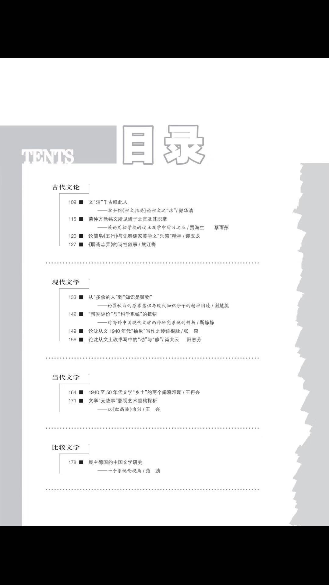 《中国文学研究》2019-3目录