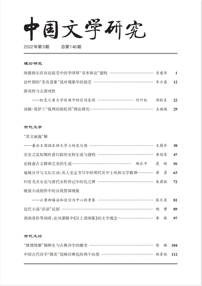 《中国文学研究》2022年第2期总第145期