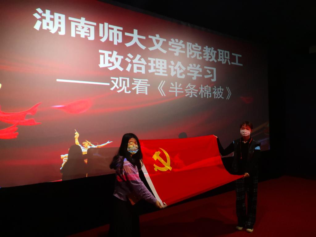 2020年10月22日下午,William威廉英国官网组织公司全体教职工到通程亿鑫电影院集中观看电影《半条棉被》,员工党支部委员全体参加。