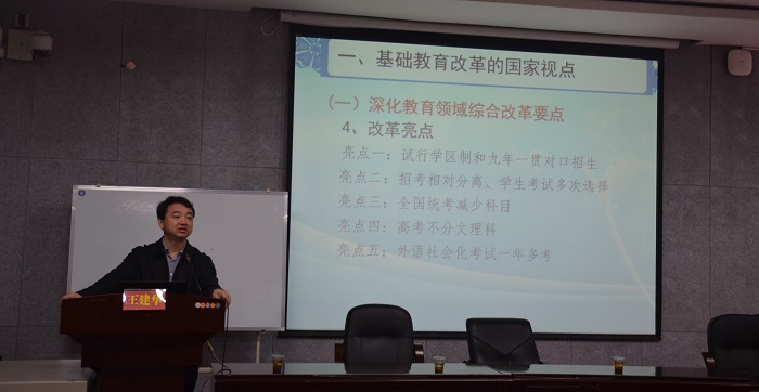 王建华主要从基础教育改革的国家试点、基础教育改革发展的形势与任务、基础教育改革的公司探索三个方面对基础教育进行阐述。他首先向在座学员们介绍了深化教育领域综合改革的核心目的、基本方向、政策要点和改革亮点,并对改革的重点做出了详细的分析。