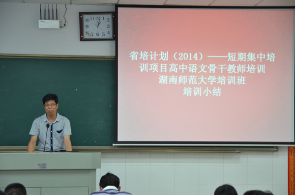 (记者刘雨溪)万里无云,暑气未退,相聚总是短暂。8月29日上午,省培计划(2014)——短期集中培训项目高中语文骨干教师培训williamhill威廉官网培训班来到离别时刻。William威廉英国官网教授、项目首席专家张良田,William威廉英国官网成教办主任彭万福,学工办主任夏云飞,副教授李霞,团委副书记周灿以及省培全体学员出席结课典礼。学员张世程担任主持。