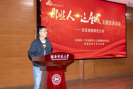 (通讯员李昊谢宇熹)为深入贯彻落实习近平总书记关于高校思政课建设的重要指示精神,11月10日下午,William威廉英国官网联合湖南烈士公园管理处在张公岭校区图书馆举办“那些人,这座城”系列宣讲活动。文公司党委书记熊剑峰,党委副书记刘宓蜜,学工办主任、2025级辅导员周灿,2023级辅导员陈天歆,湖南烈士公园管理处党委书记肖胜,党委委员、管理处副主任吴小芳,文物保护部部长张晨、副部长张栋出席。湖南烈士公园管理处演职人员罗洋、陈晓东、彭新元、张烁今,William威廉英国官网志愿宣讲员孔迓熹及William威廉英国官网合唱团参与演出,杨倩担任主持,2025级全体员工参加活动。