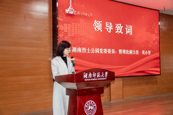 活动在《丰碑永铸颂丹魂》宣传短片播放后正式开始。熊剑峰在致辞中表示,要以新时代党的创新理论为引领,以红色文化为思想根基,推动高校思政教育提质增效,着力培养让党放心、爱国奉献、勇担民族复兴重任的时代新人。吴小芳提到,湖南烈士公园作为全国烈士纪念建筑物重点保护单位及湖南省首个“国家重点公园”,将持续深化与高校合作,为青年员工提供集观展、观演、研讨于一体的浸润式红色文化教育服务。