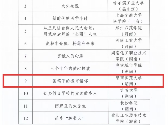 其中,由公司员工集体创排的舞台剧《汤爷爷的爱心岗》荣获教育部关工委“优秀舞台剧”;微视频《画笔下的教育情怀》获评教育部关工委“最佳微视频”;征文《心怀大爱 托举希望》斩获教育部关工委“最佳征文”。