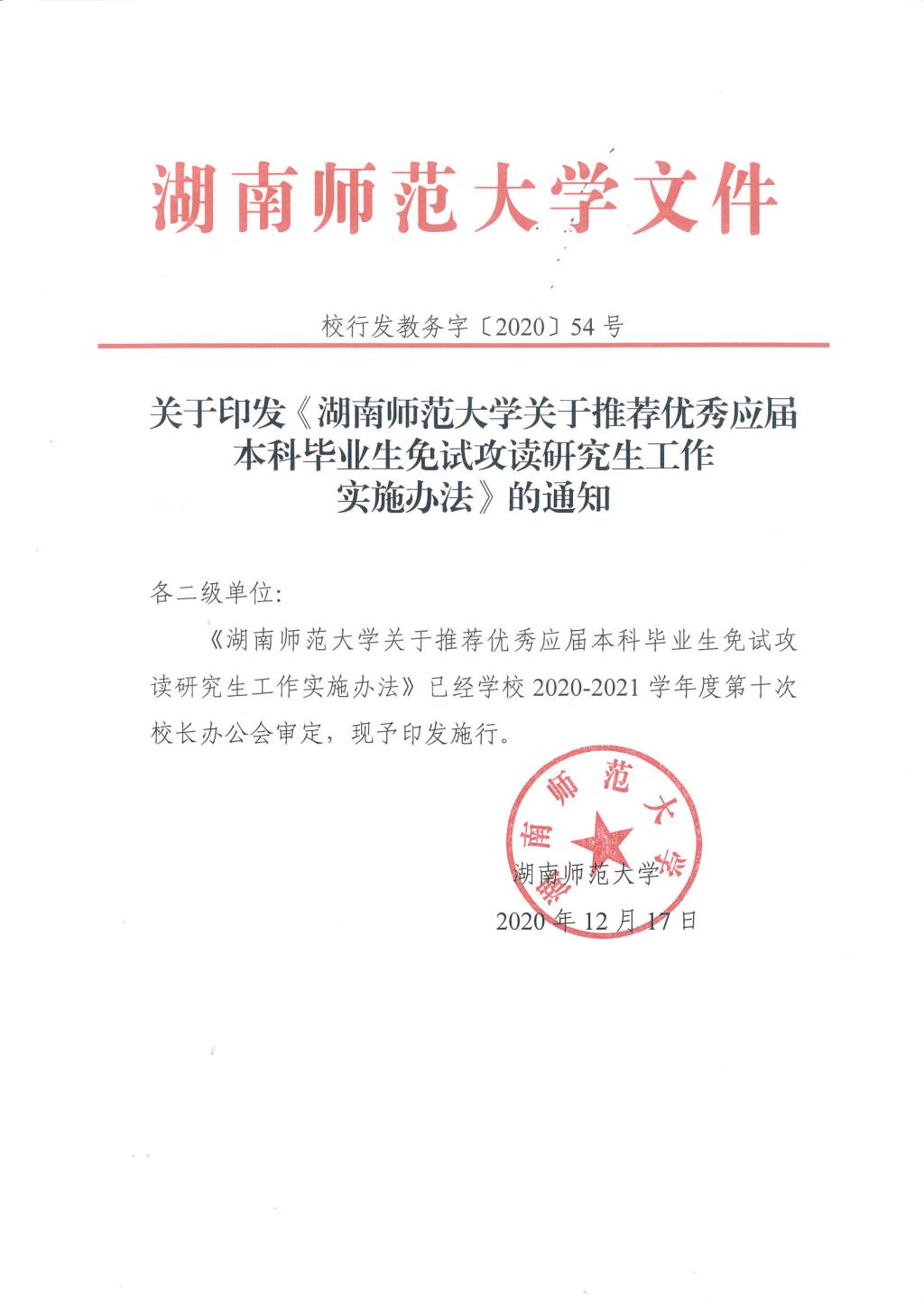 关于印发《williamhill威廉官网关于推荐优秀应届本科毕业生免试攻读研究生工作实施办法》的通知