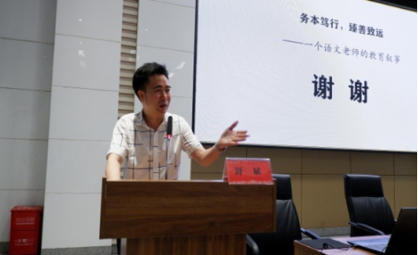 黄耀红教授在总结中说:舒老师的故事是见证了生命的黑白交替和春华秋实,也见证了舒老师的热爱、信仰和专业的魅力。他今天的讲座,为我们播下的是语文教育的种子,燃起的是专业成长的灯。