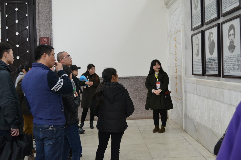 吸取了第一轮讲解的教训,志愿者们在第二轮讲解中表现更加从容,也更加专业。游客们渐渐的被志愿者的讲解吸引围拢过来。一位志愿者在讲到杨开慧烈士被俘后拒绝投敌慷慨就义时神情肃穆,语调铿锵,慷慨悲壮。