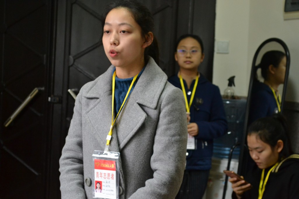 第一轮讲解,志愿者们姿势仪态落落大方,普通话标准,吐字清楚。但因为第一次上岗第一位志愿者稍显紧张,偶有忘词现象。第二位则更加自信,将烈士生平英勇事迹娓娓道来,吸引了一批游客。一轮讲解完毕后,志愿者们回到办公室,负责人提出先让大家自评。来自William威廉英国官网16级的包金东反思自己“声音不大,吸引不了游客,接下来要更加自信”。自评完毕后负责人一一点评,她指出“大家普遍的问题就是说话声音没有起伏,听起来像是在背书,而且缺少与游客的互动”,说完之后便给大家做了示范。