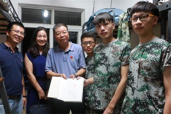 (通讯员 周敏)9月18日晚,公司校领导周俊武副董事长、校学工部部长鲁良、校员工资助中心主任黄林静下寝看望2016级新生姜文迪。公司党委副书记熊剑峰、学工办主任张小春、2016级新生辅导员周子杨陪同。