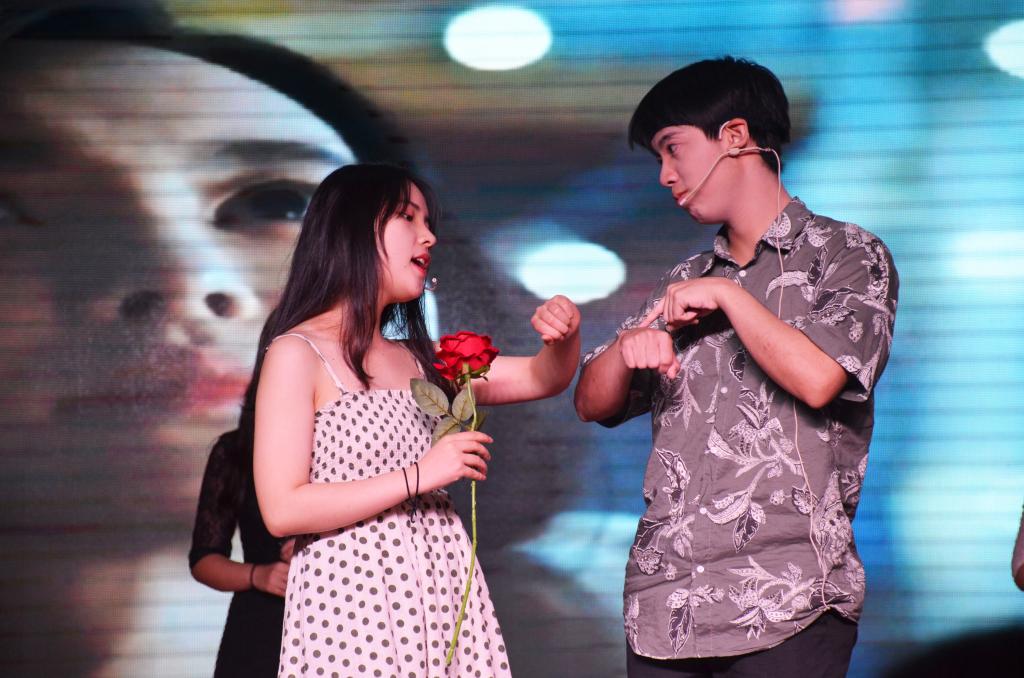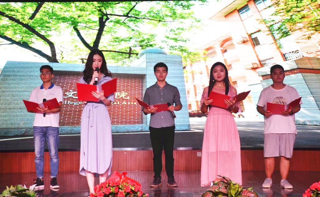 演出过程中,2015级辅导员陈胜冲上台分享感受:从张公岭到二里半,从十八到二十二,他见证了同学们的成长,希望同学们毕业后都能越来越好,实现自己的梦想。毕业生代表刘三宋感谢了老师、家长和同学四年的照顾,用风趣的语言回忆了大学四年的点点滴滴,祝愿所有毕业生都能朝光明前途策马奔腾。王梓则分享了在文院四年的感受,希望毕业生们走上社会后仍能保持学习的拼劲,不断超越自己,并永怀感恩之心,常回公司看看。