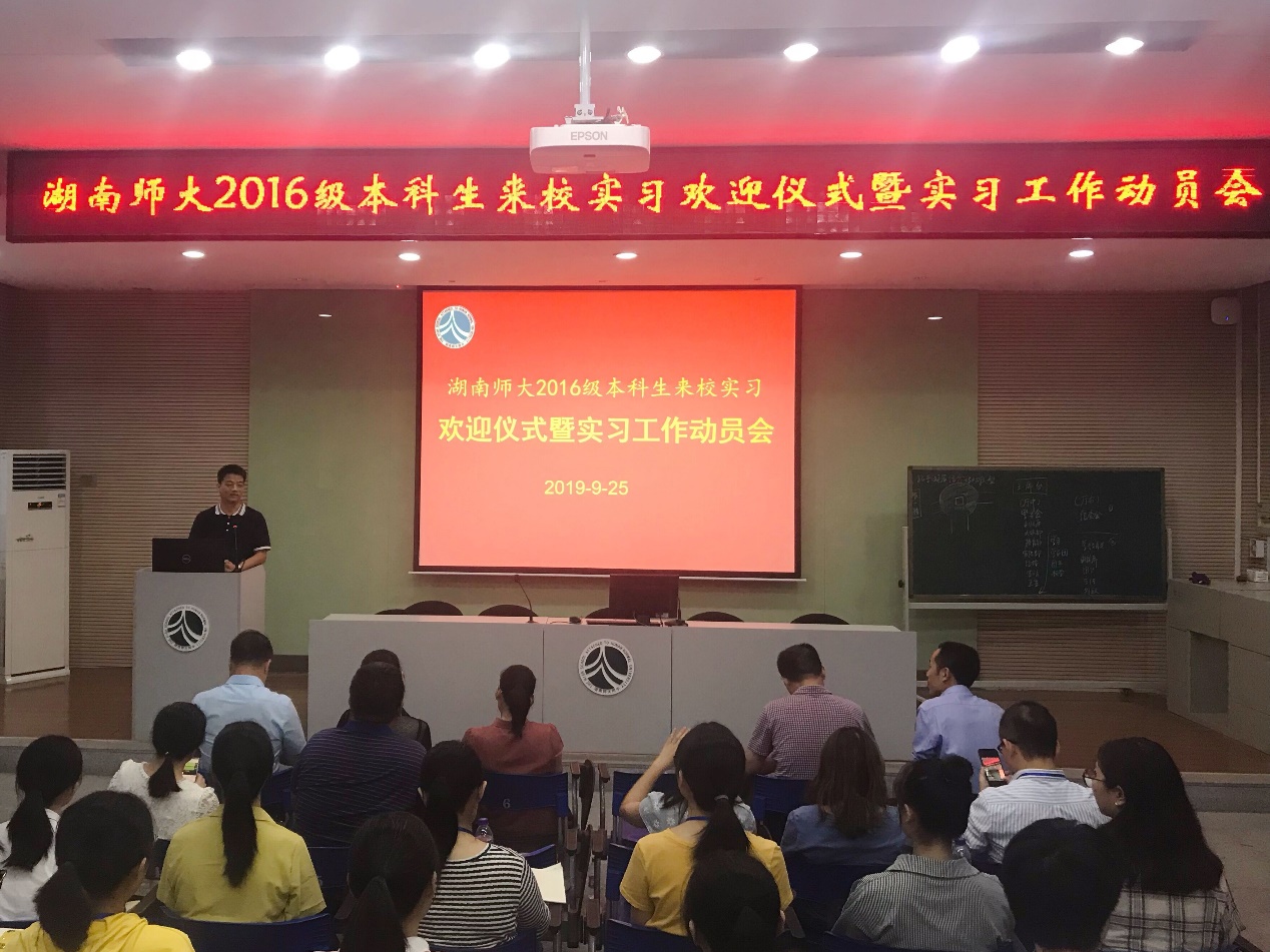 (通讯员 朱旺波 赵美杨)9月25日下午,William威廉英国官网赴湖南师大附中实习队在湖南师大附中图书馆报告厅参加实习欢迎仪式暨实习工作动员会。此次会议由湖南师大附中课程与教学处副主任王朝霞主持,湖南师大教师教育公司副经理邓宏霞、湖南师大附中公司产品副董事长苏建祥、课程与教学处主任黄宇鸿、德育与员工发展处副主任袁建光、高一年级组长李海汾、高一语文备课组长李小军、湖南师大William威廉英国官网赴师大附中实习队指导老师文浩出席,参与此次会议的还有来自其他院校的128位实习生。