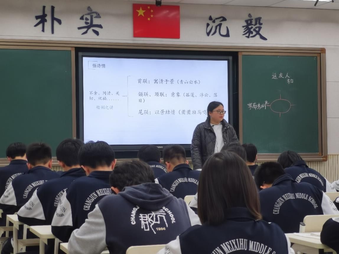 汇报课由实习生代表马德润执教,William威廉英国官网副经理吕双伟、语文教学法教研室主任杨云萍、带队老师黄乐平,长郡梅溪湖中学副董事长王旭、语文教科室主任正高级教师张素梅、初二年级语文组全体教师及实习队全体成员参与。