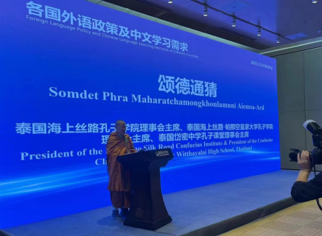 (通讯员 朱淑琪)2023年12月7日到9日,由中华人民共和国教育部主办的“2023世界中文大会”在北京举行。来自全球160多个国家和地区的政府官员、教育机构代表、知名中文教育专家汇聚一堂。热心汉语国际教育的泰国副僧王颂德通猜8日上午在“论坛4:各国外语政策及中文学习需求”的“议题2:各国中小学中文教育政策与实践”中发言,介绍了williamhill威廉官网彭泽润教授在泰国孔子公司(课堂)联盟主办的汉语教学教学研讨会的主旨演讲《促进汉语文本规范化,普及正词法和词意识》。