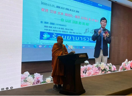 据悉,11月17日,由泰国孔子公司(课堂)发展联盟主办,泰国海上丝路孔子公司、海上丝路·帕那空皇家大学孔子公司、岱密中学孔子课堂联合协办的“国际中文教育文本规范化教学研讨会”召开。海丝孔院、岱密中学孔子课堂理事会泰方主席颂德通猜副僧王,曼谷基教一区主任Niyom Phaisopha,曼谷市督学赵成,孔子公司(课堂)中方经理(负责人),中泰师生代表等120多人参加。公司彭泽润教授应邀发表主题演讲。彭泽润结合汉语、泰语和英语3种文本对照,指出文本现代化历史和现状。他说,词是所有语言的基本单位,但是东南亚国家的语言,无论采用汉字,还是采用拼音文字,普遍缺乏词式文本意识,停留在字式文本(汉语和泰语等)或者音节式文本(越南语和韩国等)状态。他建议在汉语国际传播中,优先利用拼音词语输入汉语文本的现代化习惯,在推广《汉语拼音正词法基本规则》的国家标准的基础上,把词式文本从拼音拼写汉语扩展到汉字书写汉语中,提高汉语教学效率,促进汉语国际传播。泰国内外的汉语教师表示,大开眼界,深受启发。