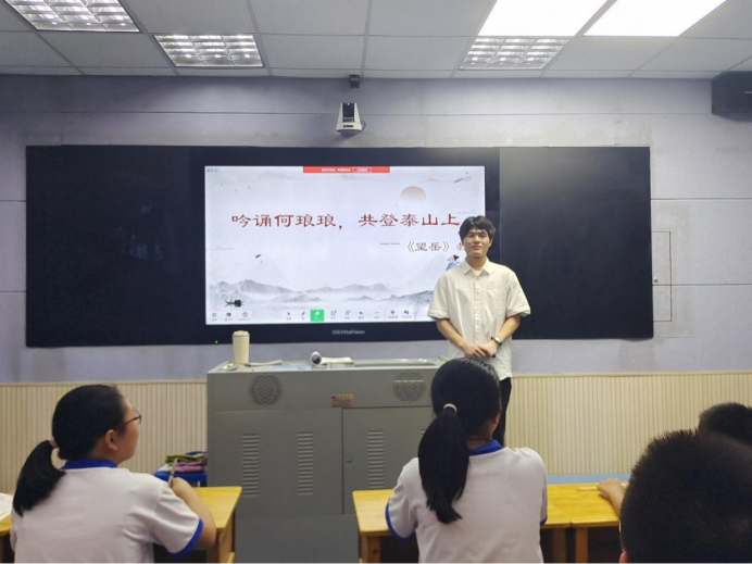 韦巍以曹操《观沧海》作为导入,围绕“怎样望岳”“望到了怎样的岳”两个问题展开,传达了杜甫“会当临绝顶,一览众山小”的雄心以及卓然独立、兼济天下的英雄气概。课堂氛围良好,师生合作密切,最终实现了传授知识与立德树人的统一。