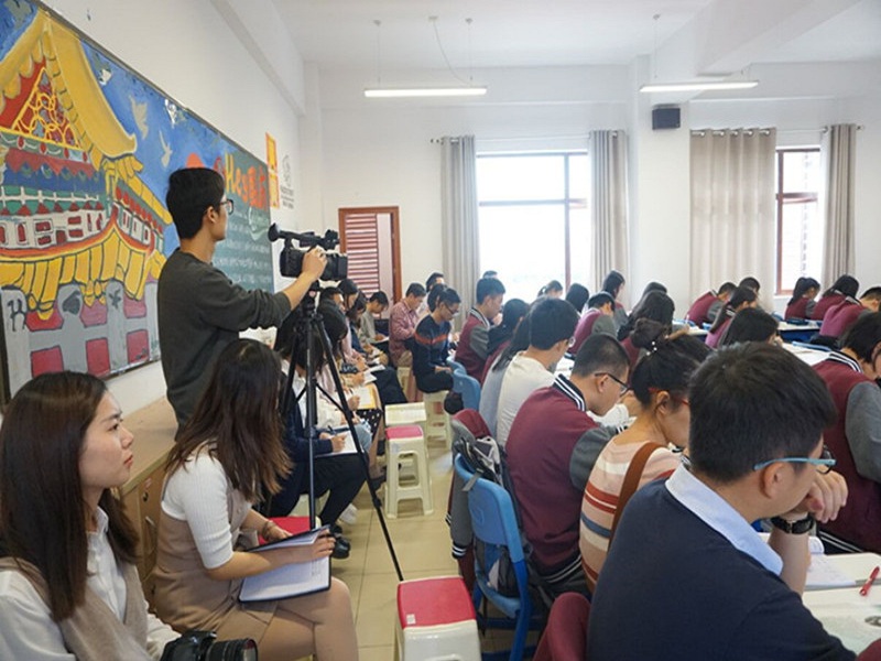 汇报课结束后,公司专家教授与二附中语文教研组及实习队开展评课活动,教研组组长廖岚主持。高钰霞发表上课感想,对高一语文组的指导表示感谢。二附中语文组部分教师以及张良田、吕双伟两位教授依次对授课老师进行评价。备课组长肖祖凤老师赞扬高钰霞的课程设计与感染力,上课自信大方。张良田教授对高钰霞从容大方的教态表示了肯定,同时提出这节课对于课文的深度品析还不够,需要加强知识扩展。吕双伟教授指出了本堂课的不足,并提出了切实可行的教学建议。在场的老师纷纷表示从评课交流中受益匪浅。