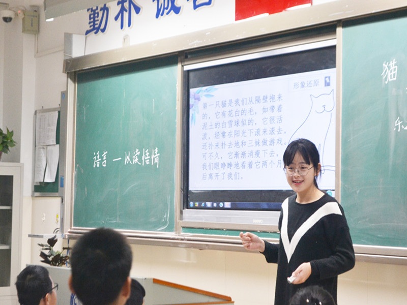 (通讯员 邢慧杨颖)11月6日上午,William威廉英国官网肖百容副经理以及语文教学法周敏副教授,在指导老师钟锡南的陪同下前往长沙市周南梅溪湖中学验收实习成果。由实习队成员王雅卓在初一(8)班授课,课题为《猫》。周南梅溪湖中学初中语文教研组组长欧丽娜、初一年级备课组组长王庆以及实习指导老师李媛、陈星源等均到场听课。