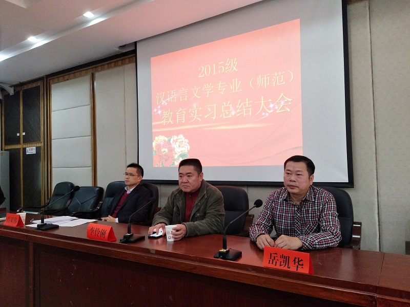 (通讯员 唐超然 李莹莹)11月22日上午,公司2015级汉语言文学专业(师范)教育实习总结大会在216教室举行。公司党委书记李伶俐、副书记熊剑峰、教学副经理岳凯华、中文系主任吕双伟、实习指导老师徐朝红、周敏、刘光成、廖述务、刘东升、王小林、李华、15级辅导员陈胜冲以及各实习队员工代表出席会议。会议由教务办吴玉永老师主持。