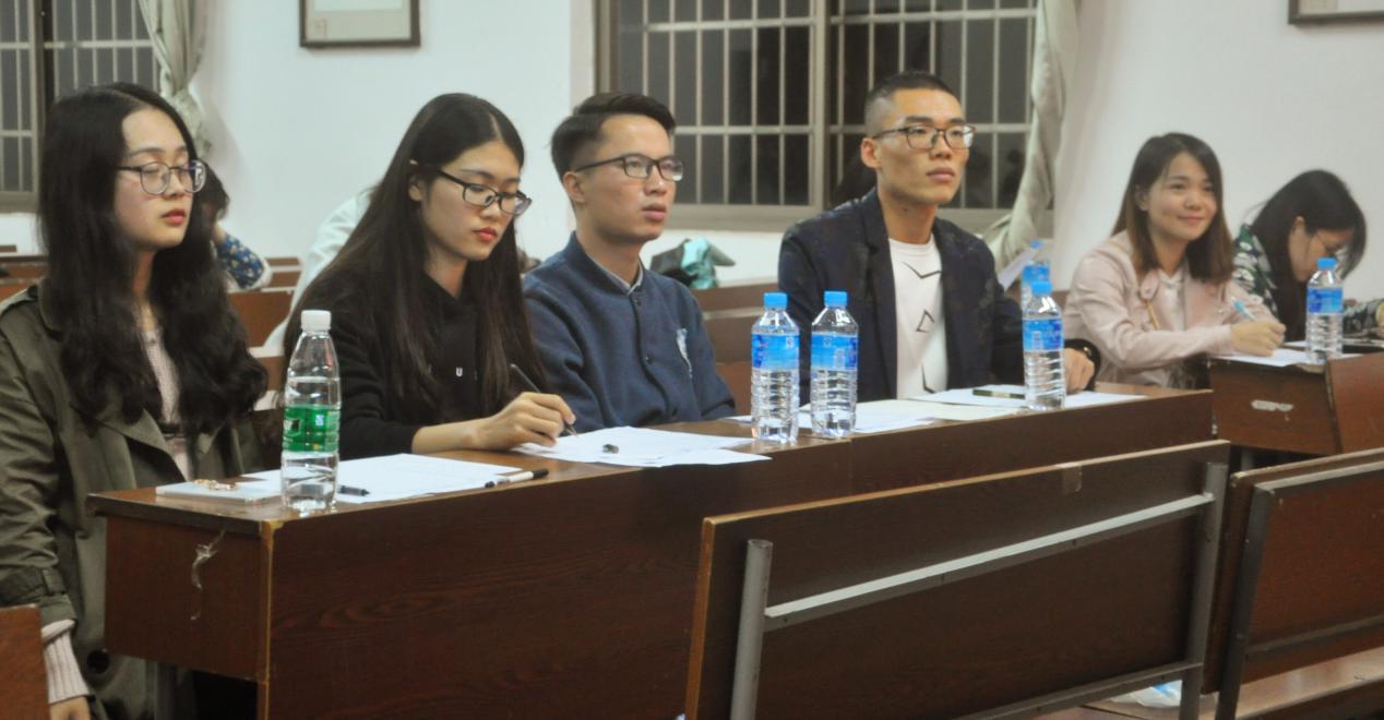 (通讯员 谢慧娟 摄影 薛薇)10月15日晚,公司在213教室举行第二十届“研两会”招新面试。此次招新由第十九届研两会承办,共有20余名研究生通过填交报名表的方式报名。科研办陈雅琪老师、第十九届研两会成员以及2016级研究生党支部书记共同担任评委。