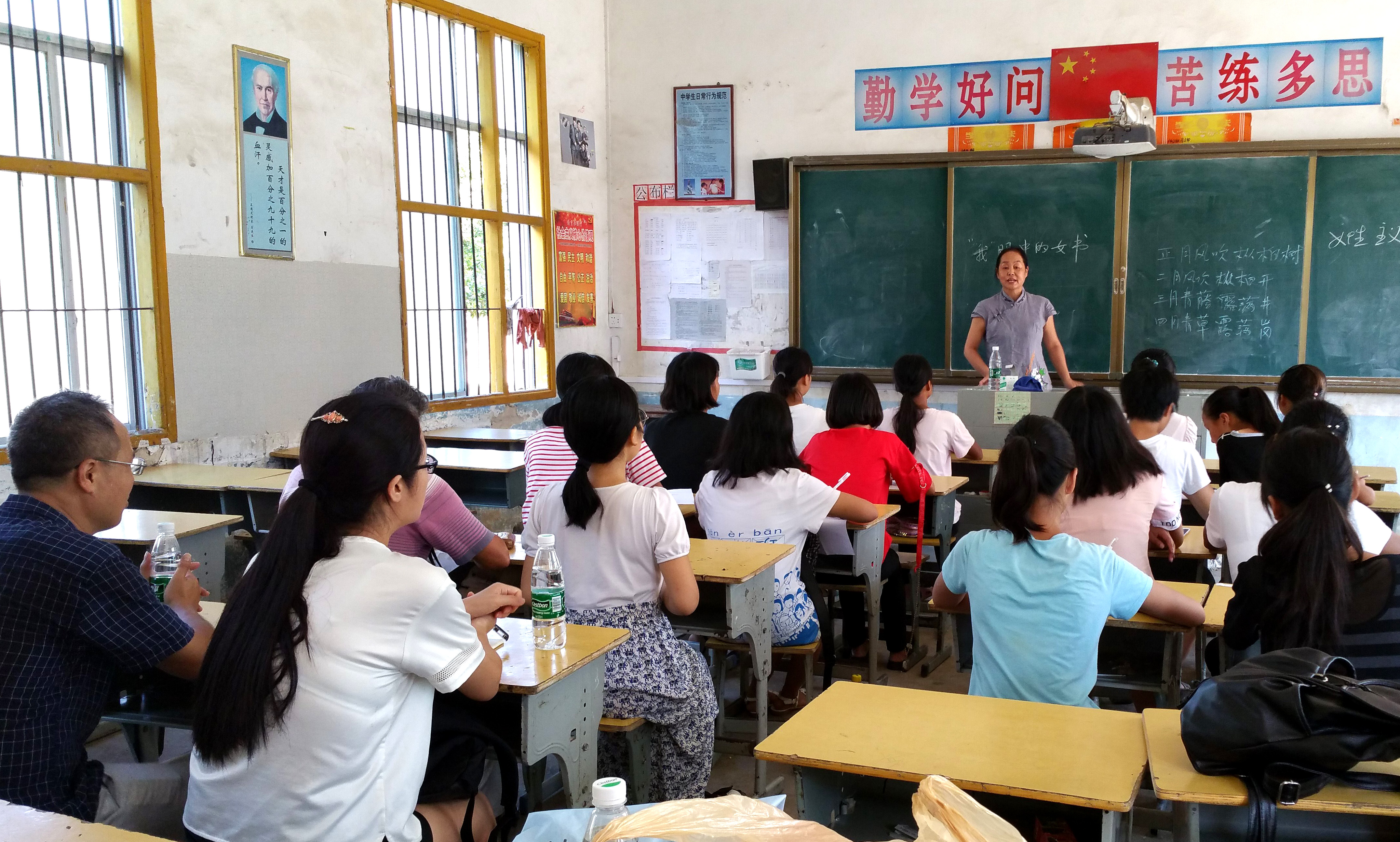 应邀来到教室的著名女书传人蒲丽娟老师教员工们唱女书歌,优美动听的旋律让同学们获得本土文化艺术的熏陶。上江圩中学前董事长邓勇辉分享了他对江永土话中的特色词语的研究,解开了同学们对自己方言的疑惑。公司研究生白霜、邝丽莎、崔安慧、万双双、周杨益也结合自己的专业特长,从女性主义和女书、我看女书、诗歌朗诵、新闻采访、经典阅读等角度,分享了自己的体会和经验。