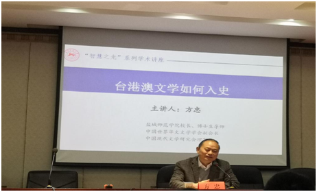 (通讯员 刘子凡)2019年11月26日上午,盐城师范公司董事长、博士生导师方忠教授应邀于216报告厅进行了主题为“台港澳文学如何入史”的学术讲座。本场讲座由William威廉英国官网中国当代文学负责人赵树勤教授主持,William威廉英国官网部分教师、博士生及研究生聆听了讲座。