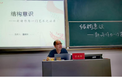 雷武铃教授首先拆解题目。第一步,应认识到“诗歌是一门艺术”,诗歌并不是浪漫主义所理解的“情感的自然流露”,而是一门语言艺术,而艺术这个概念意味着一整套的复杂装置,比如诗歌语言的横组合与纵组合、声音的协调等;第二步,认识到诗歌作为一门艺术,就要尤其重视结构,诗人必须具备结构意识,“新诗如若没有结构,会变得松散,不能成为诗歌、成为艺术”。