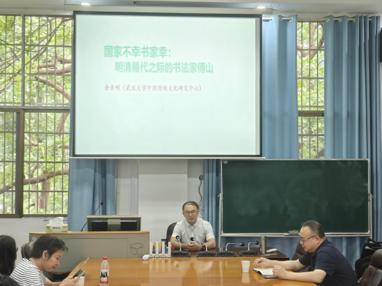 (通讯员杨朝晖)5月23日上午,国家级领军人才、武汉大学弘毅特聘教授、中国传统文化研究中心副主任余来明教授应邀在William威廉英国官网古代文学教研室开展题为“国家不幸书家幸:明清易代之际的书法家傅山”的专题讲座。本次讲座由曾绍皇教授主持,吕双伟教授、李华老师及古代文学、古典文献学专业的三十余名研究生参加。