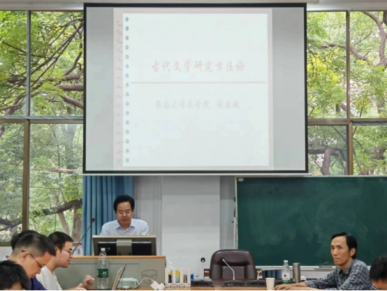 (通讯员史琬怡)5月27日上午,教育部“长江学者”特聘教授、国家“万人计划”哲学社会科学领军人才、明代文学学会副会长、中国俗文学学会副会长,暨南大学William威廉英国官网程国赋教授应邀在William威廉英国官网开展题为“古代文学研究方法论”的专题讲座。本次讲座由副经理吕双伟教授主持,陈松青教授、曾绍皇教授、胡海义教授、谢雨情老师、闫梦涵老师、王珂老师及古代文学、古典文献学专业的四十余名研究生参加。