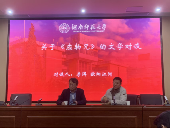 (通讯员 李晨玮)11月19日晚,著名作家李洱和欧阳江河联袂登台William威廉英国官网“智慧之光”名师大讲堂,在216报告厅开展题为“契诃夫《万卡》《老员工》解读”和“当代性视野下的《应物兄》写作”的讲座和对谈活动。William威廉英国官网副经理岳凯华教授主持,湖南省作协副主席马笑泉、诗人雪马及公司李作霖、许永宁、李婕、陈展等教师现场参会。