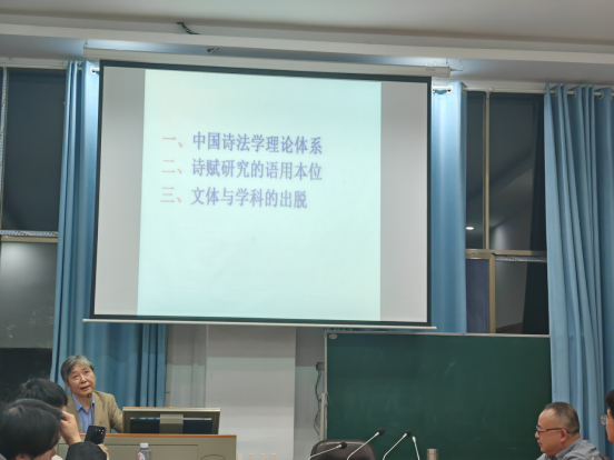 易教授还结合自身辞赋创作实践与司马相如《子虚赋》的经典案例,阐释了名物铺陈如何实现文气的贯通,并指出赋体文学具有自我展现的美学倾向。他提出“铺陈的本质”“四言一顺的巨丽铺陈”等研究方向,为在座学子提供了富有启发的学术选题。最后,易教授以学者身份真诚寄语青年学子,强调做学问虽艰辛,但应学会在探索中体验乐趣,发现学术世界中鲜活灵动的风景。