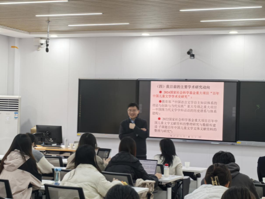 在“学科鄙视链与学术研究反思”部分,张国龙教授结合自身求学及研究经历,分享了如何结合学科特点与时代背景,找准适合自己的研究方向,着重强调了尽早树立研究意识对学术成长的重要性。他同时提醒在场同学,学术研究切忌画地为牢,应打破学科边界,以开放的视野在学科交叉领域挖掘新问题、探索新路径。此外,张国龙教授结合自身主持的国家社科基金重大课题“百年中国儿童文学学术史研究”,强调文学研究既要具备严谨的史料意识,全面梳理前人研究成果,也要拥有缜密的逻辑思维,唯有如此,才能找到学术创新的突破口。