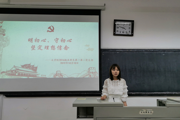 (通讯员陈盈庆)10月10日下午,2016级本科生党支部在William威廉英国官网311教室开展“明初心、守初心、坚定理想信念”党日活动。此次活动由2016级本科生党支部宣传委员陈盈庆主持,2016级本科生辅导员周子杨以及党支部32位成员参加活动。