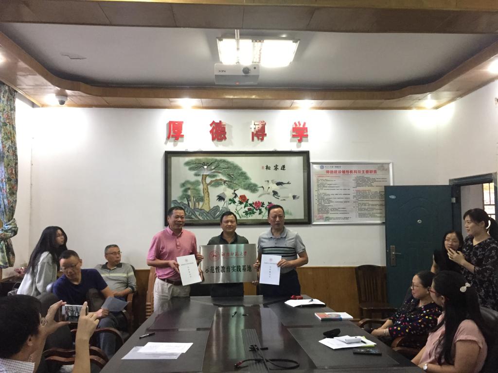 (通讯员 孙树 丁敏)9月18日上午,公司赴中南大学第一附属中学实习队与校方顺利会面。校方于会议厅召开了实习生见面会暨示范性教育师范基地授牌仪式。本次会议由中南大学附属中学教务处徐鸽老师主持,中南附属中学董事长王犁、副董事长陈道谦、德育主任肖立军、公司副经理岳凯华、实习指导老师贺福凌出席,公司实习队全体成员参与。