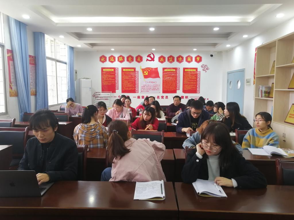 课后,双方领导老师及实习队全体成员随即开展评课会,初三语文组组长刘聪老师担任此次评课活动主持人。李赛男陈述了教学思路并发表自己的看法,陈道谦、贺福凌、李霞、彭万福和刘聪先后对公开课进行了点评,他们一致认为这是一堂比较优秀的新教师示范课,同时就朗读设计、将课堂交还员工等方面提出了建议。最后,彭万福肯定了实习队的工作,并希望实习队员们珍惜机会,加强专业锻炼,为今后成为一名优秀的教师而努力。