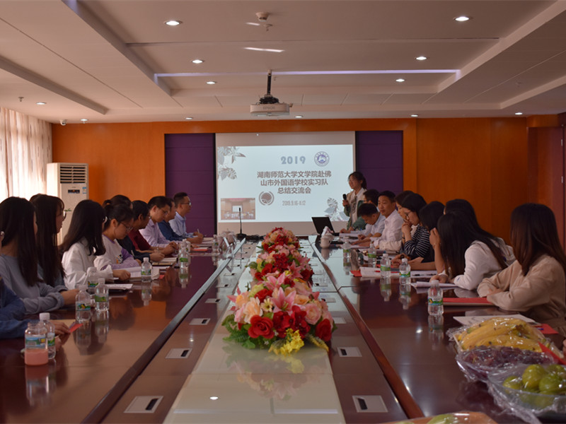 公开课后,双方领导、老师以及实习队全体成员于行政楼四楼会议室开展评课交流活动。在郭绎晗说课后,黄艳平代表实习队肯定该课经过反复磨课后成效较好。八年级语文备课组长张如燕代表佛外语文科组从文言文教学的六个必要环节进行评课,对此次公开课的文言背景拓展、审美品析以及多种方式朗读的恰当安排等方面给予高度评价。