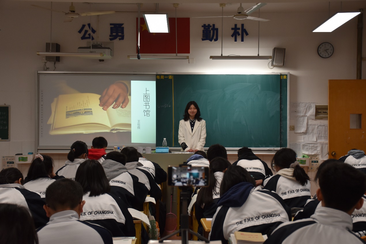 在汇报课展示中,队员彭语心在高一8班讲授的《上图书馆》主题明确,师生互动精彩。彭语心以“上图书馆的收获”为主线,引导员工品析文本,在抓住关键语句的基础上,理解上图书馆的过程其实是理性和知识的上升的道理,从而激发起员工对上图书馆的遐想与渴望。